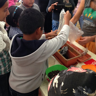 Una vez finalizado el taller de lombricomposta dimos inicio al “Taller de Semillero”, enseñando a los participantes cómo armar su propio semillero reutilizando huacales. Al terminar el semillero se llenó de tierra y repartimos algunas semillas a los participantes para que ellos mismos pudieran sembrar.